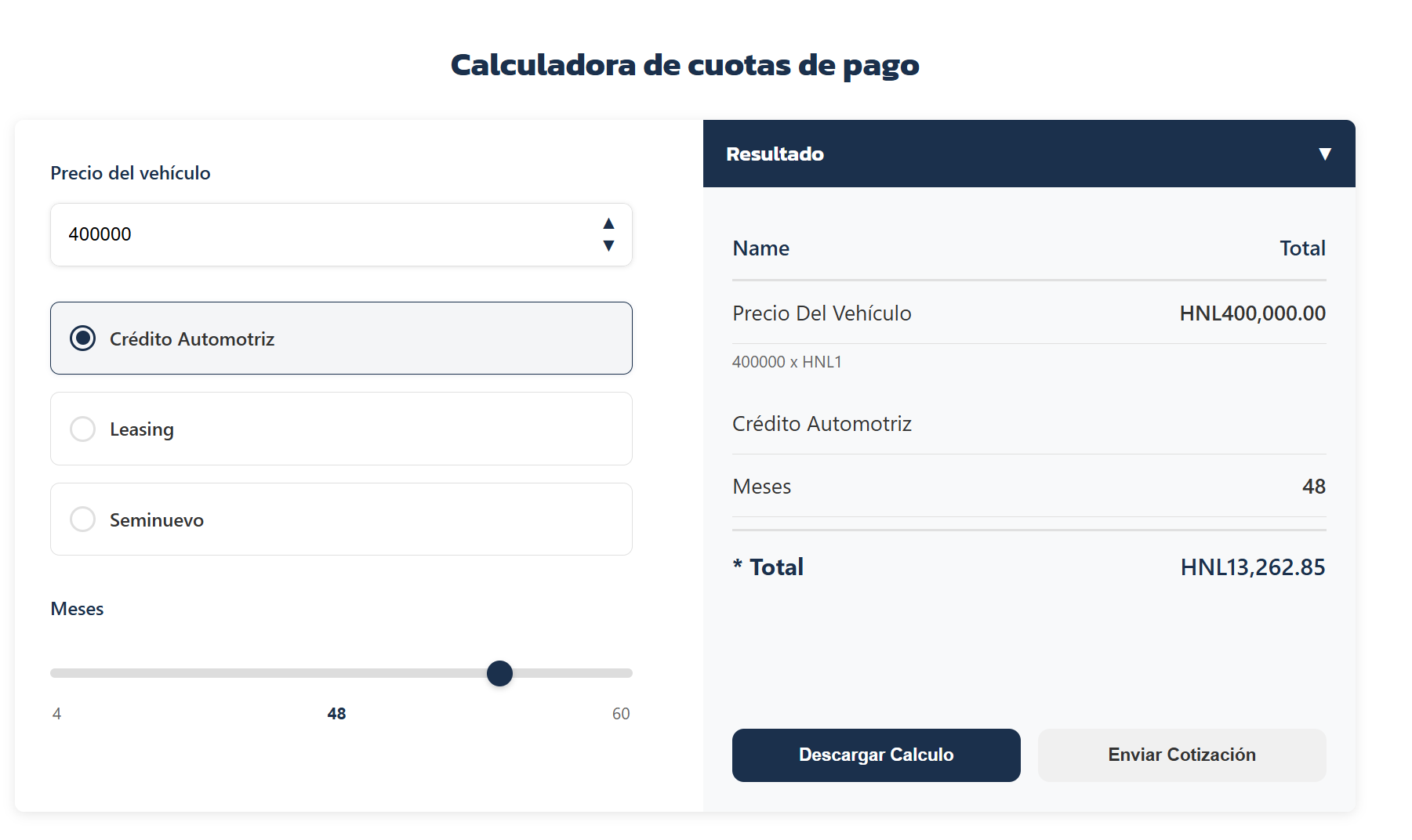 Usa la calculadora de cuotas